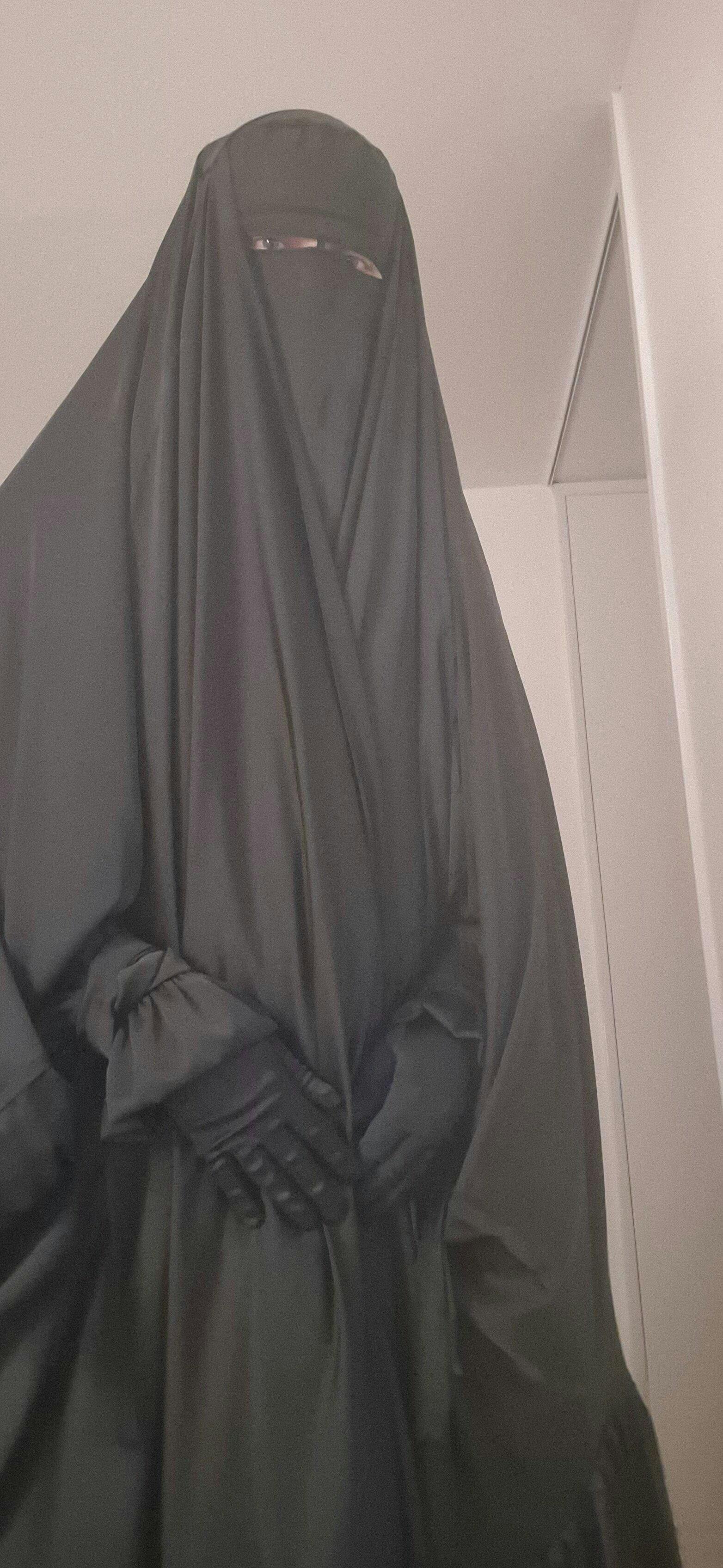 This Silk Jilbab is soft, flowing and lightweight. Tiered bottom open overhead with ruffle sleeves and bow ties.